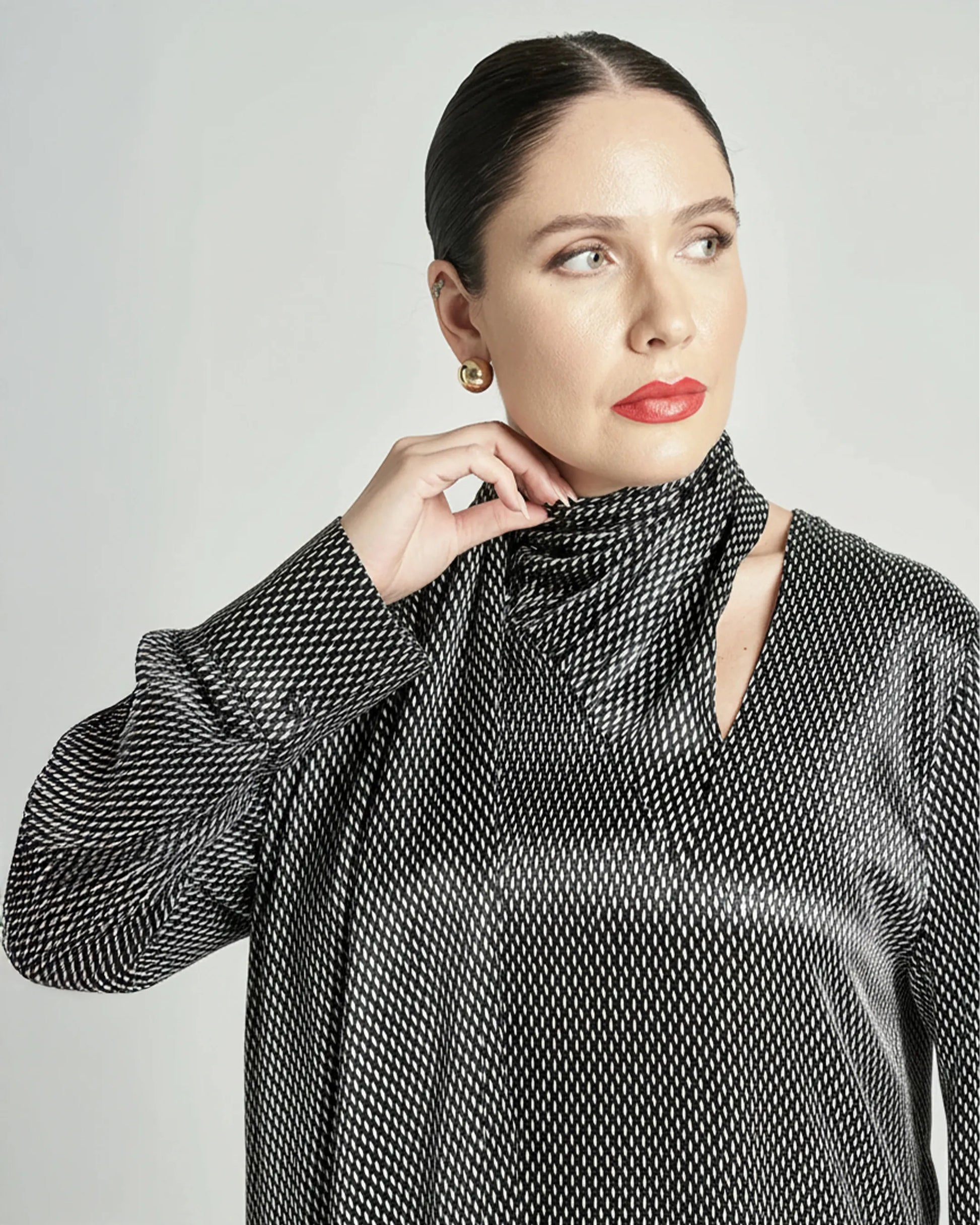 - Şık yaka ve bağlama detayı