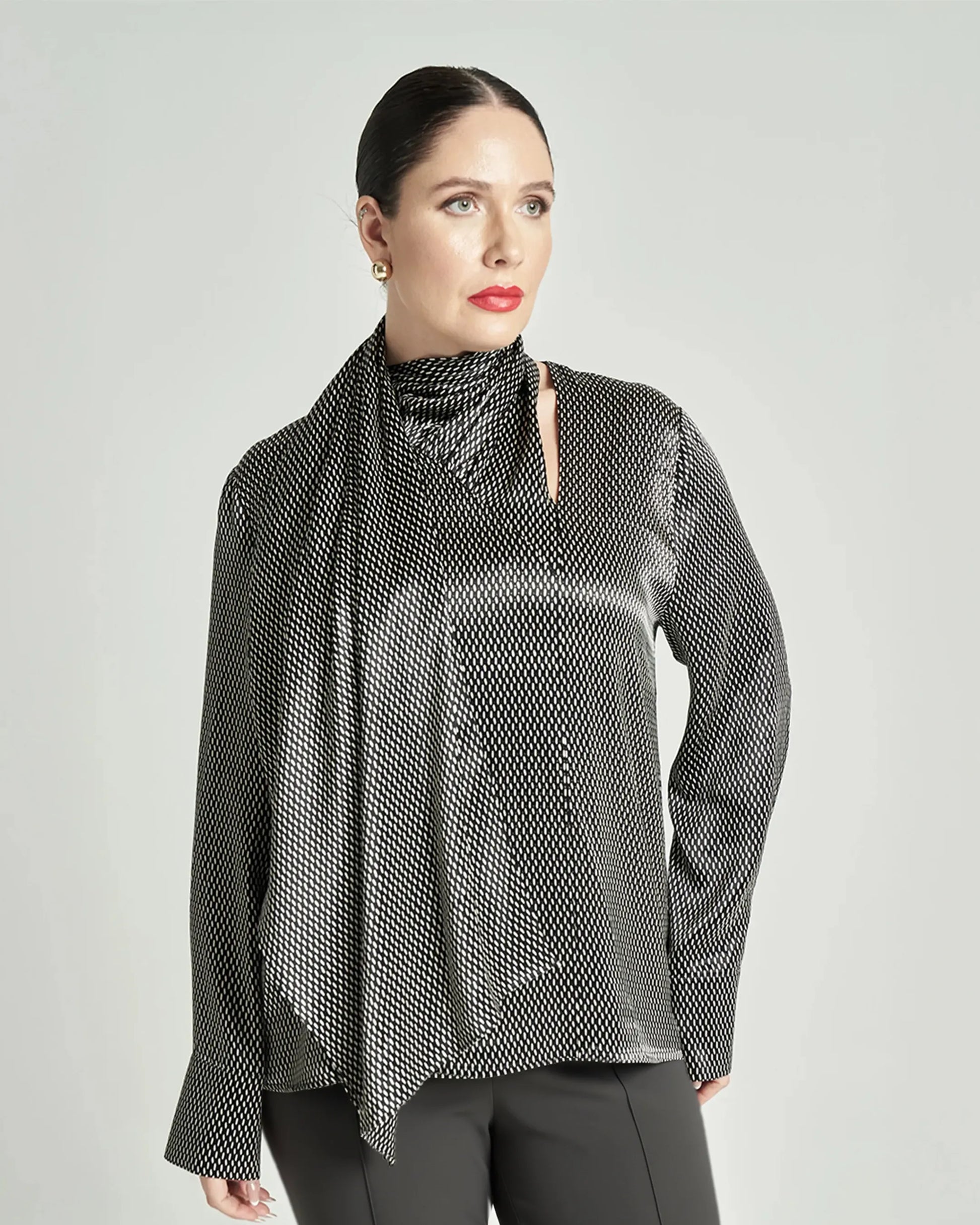 Parlak dokusu ve anvelop tasarımıyla feminen bir şıklık sunan bu saten bluz, özel davetlerden ofis kombinlerine kadar zamansız bir seçenek. Rahat kesimi ve zarif yaka detayıyla stilinizi modern bir dokunuşla tamamlar.