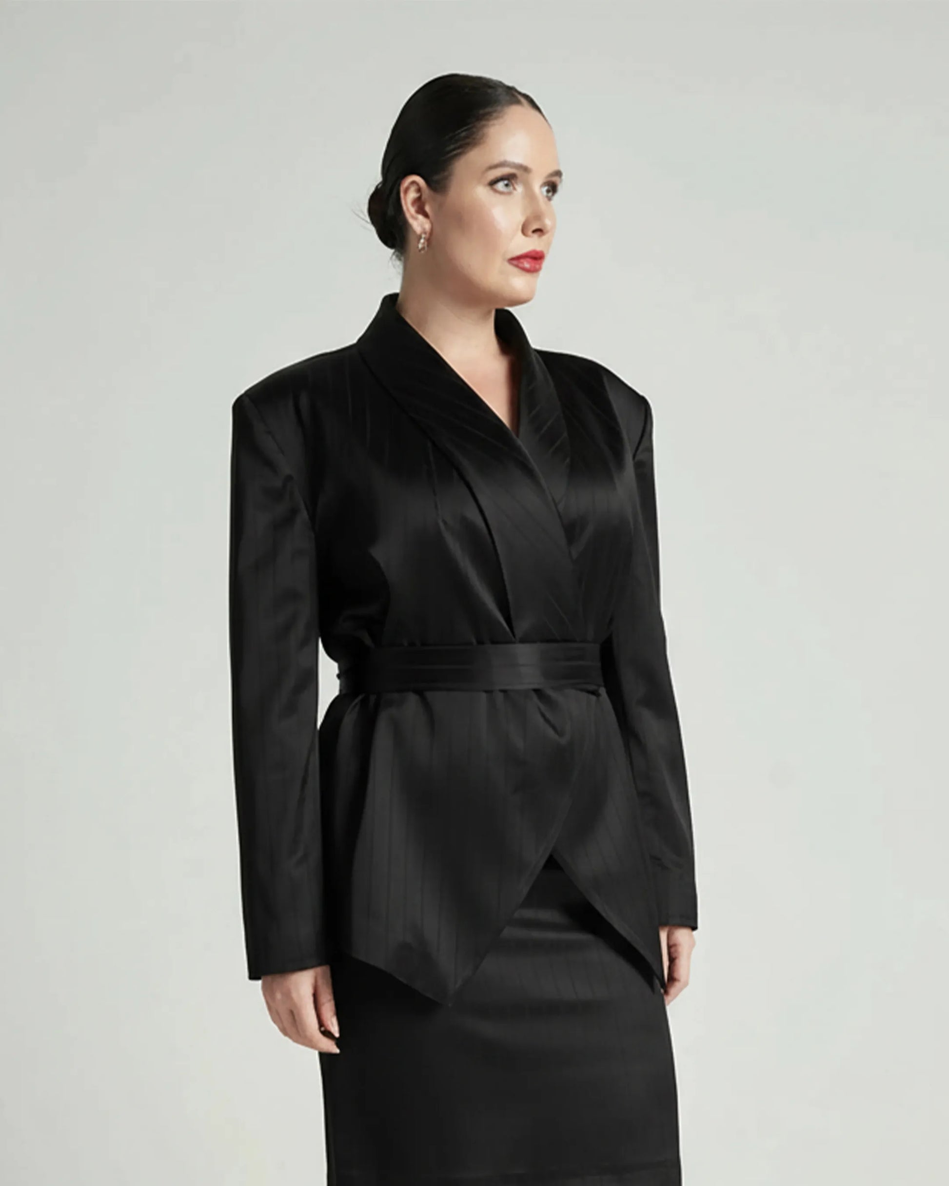 Modern çizgisi ve kuşak detayıyla bel hattını öne çıkaran Marie ceket, sofistike kesimiyle güçlü bir duruş kazandırır. Tek başına ya da takımın pantolonu/eteği ile kombinlenerek zamansız bir şıklık sunar.