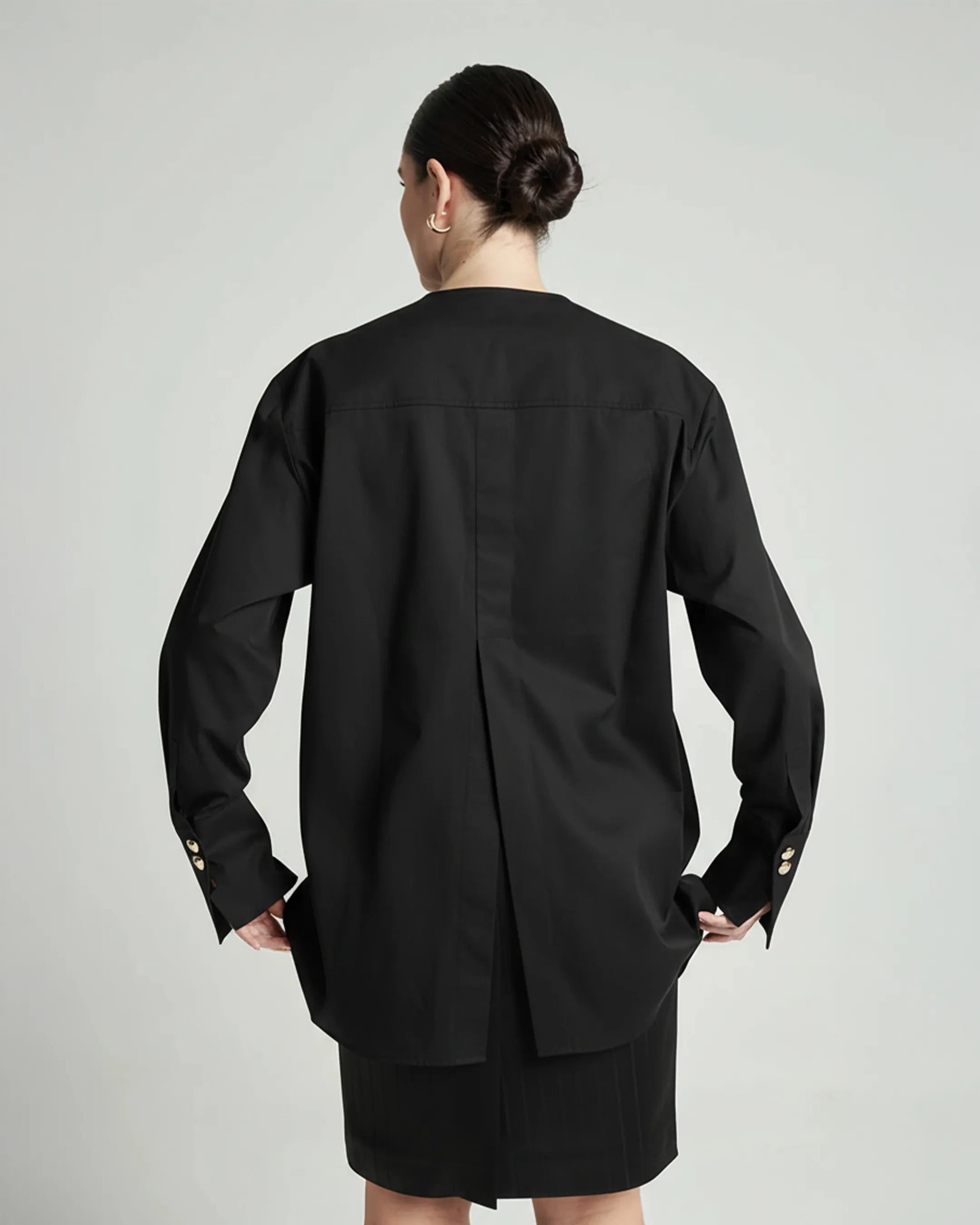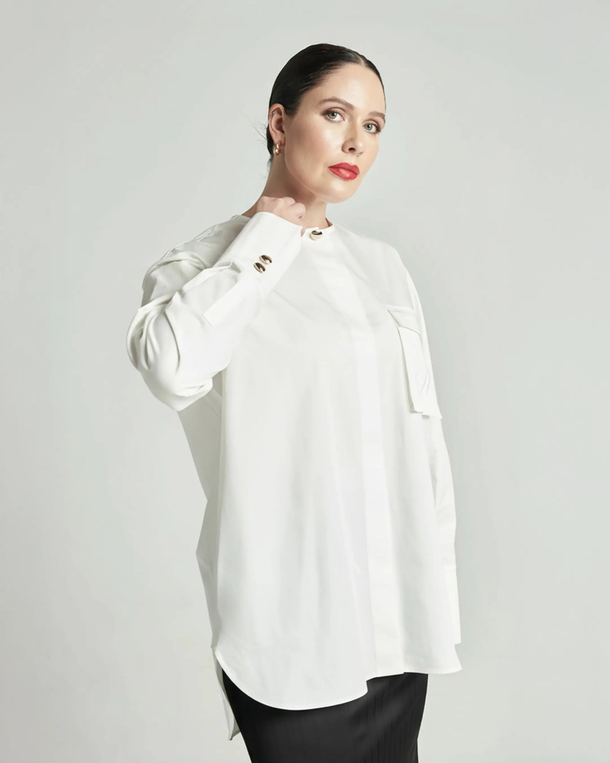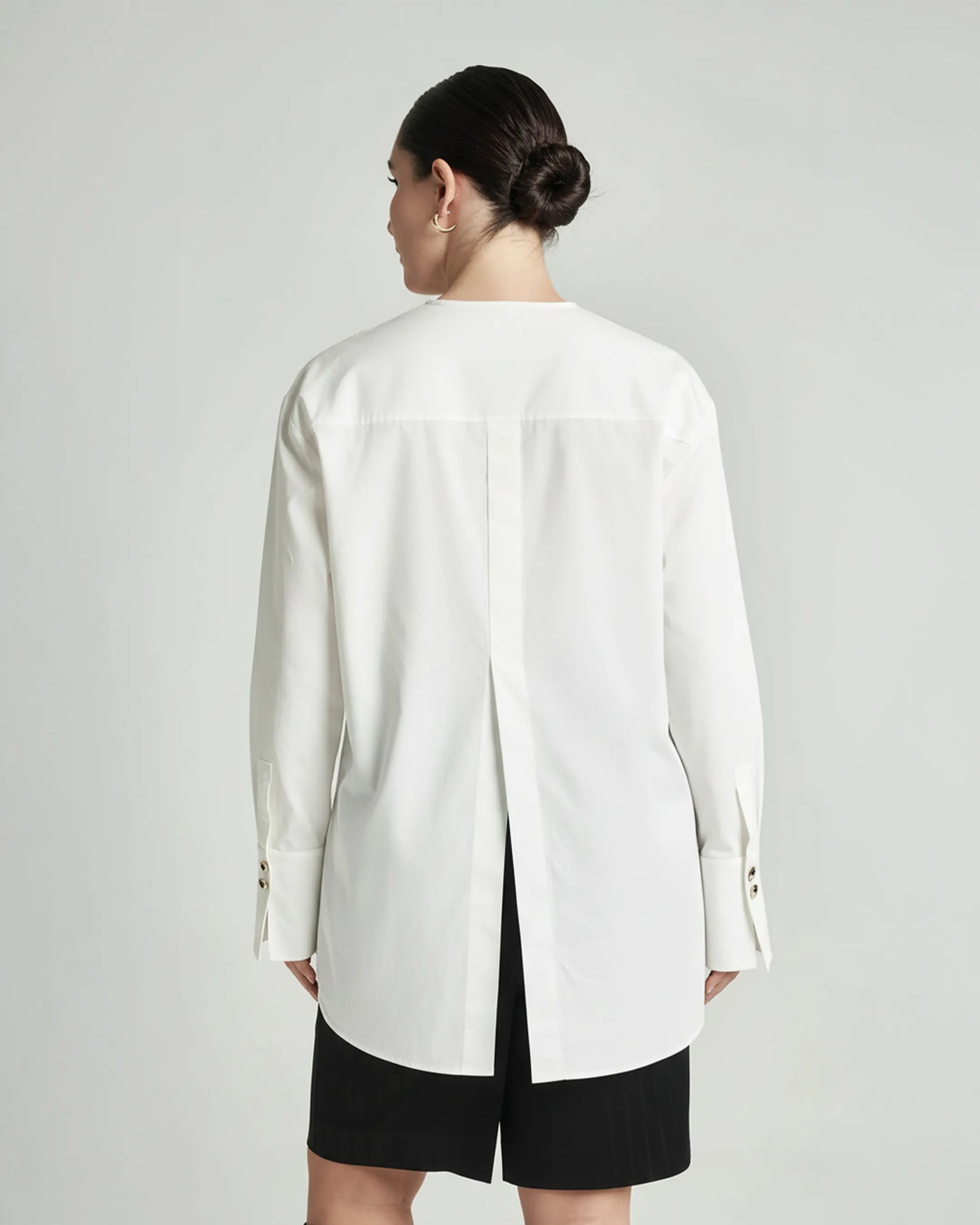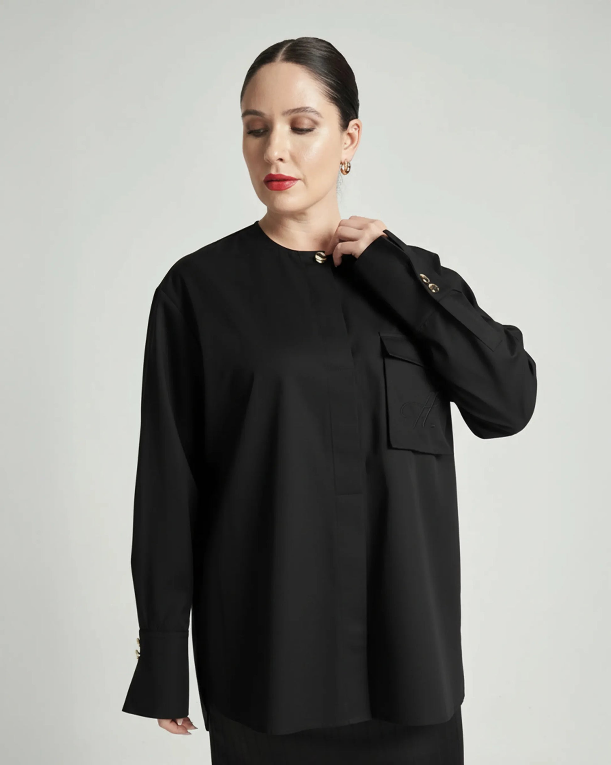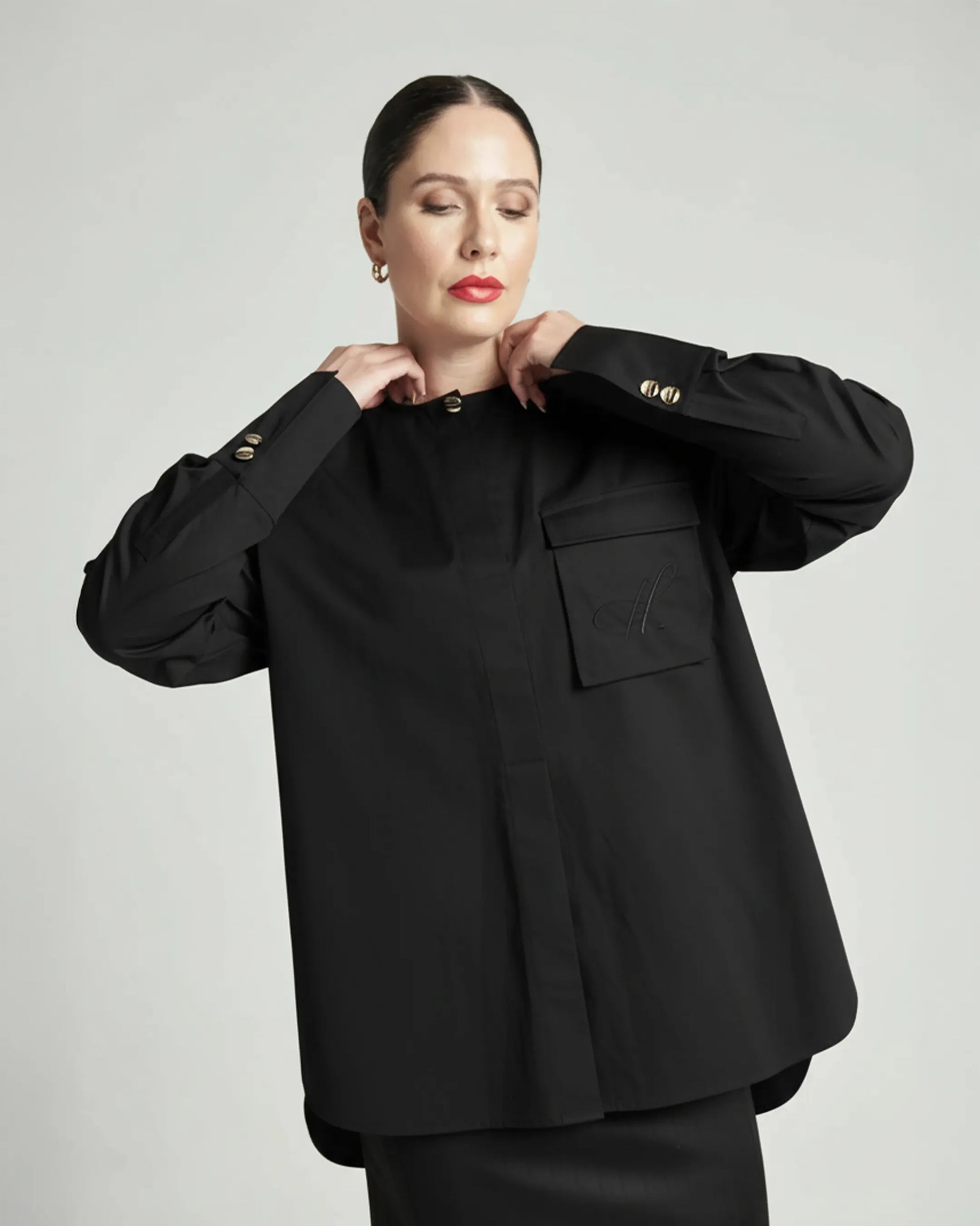 Modern kesimi, rahat duruşu ve göğüsteki minimal H. nakışıyla her kombine uyum sağlayan zamansız bir gömlek. Şık, sade ve güçlü.